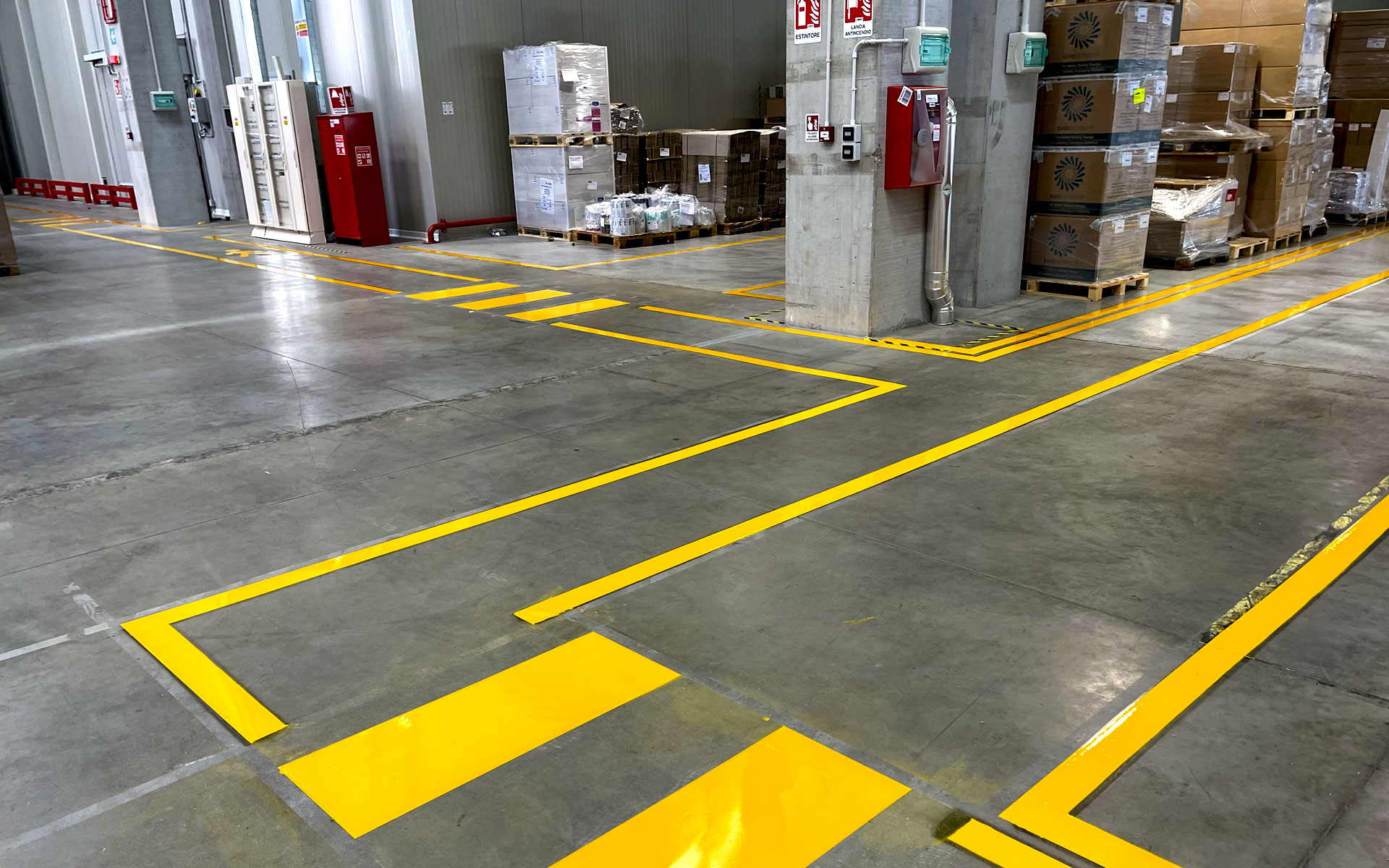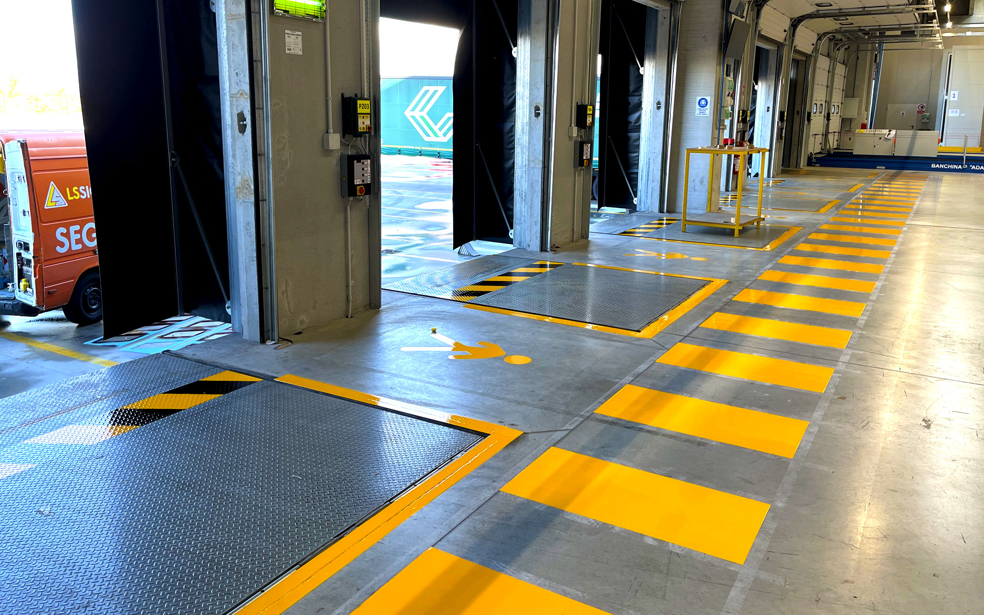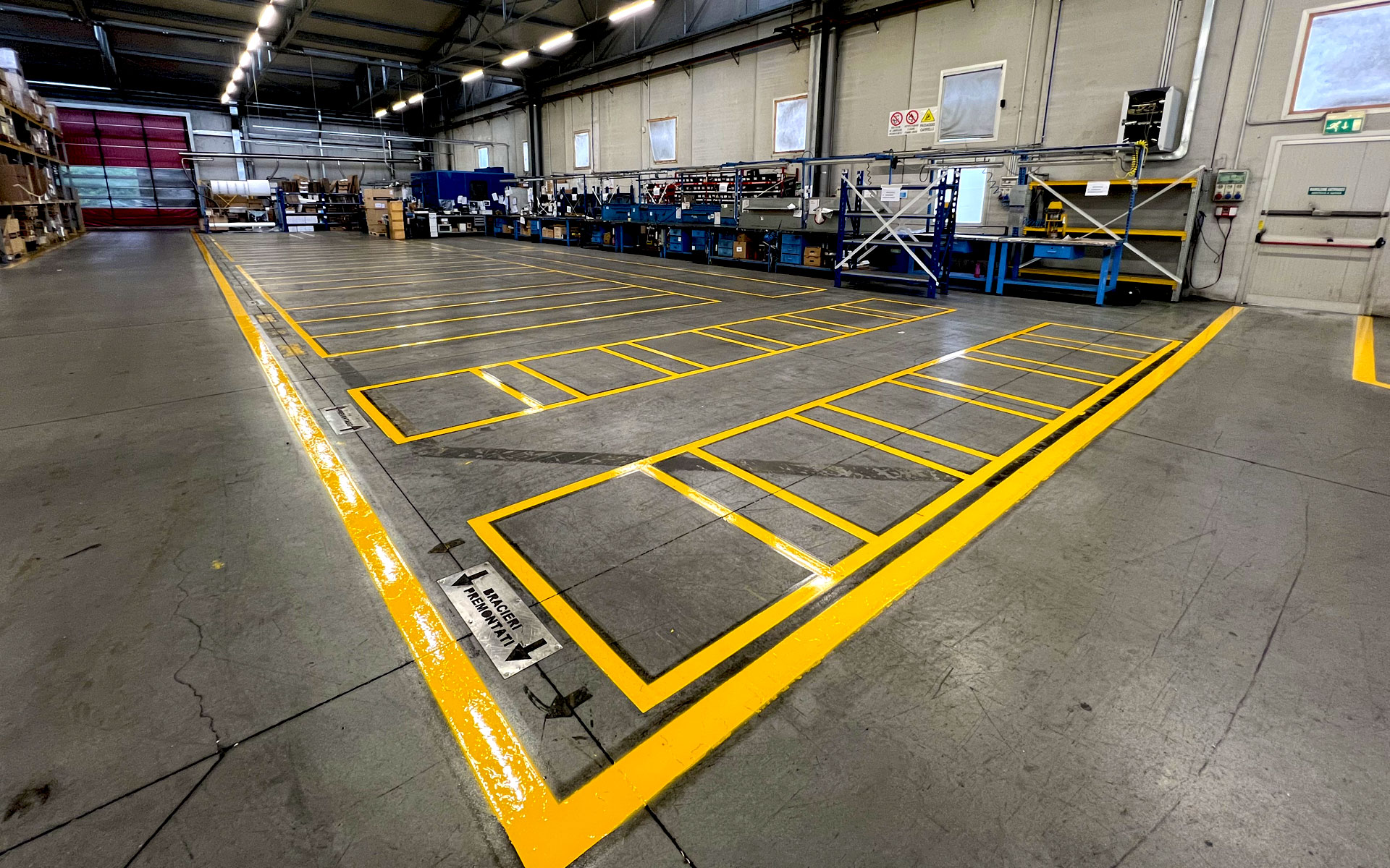 L’esperienza che lo staff di L.S. Segnaletica Stradale di Udine ha acquisito nel corso degli anni consente alla ditta di eseguire, tra gli altri interventi, corsie antinfortunistiche all'interno di fabbricati su cemento con smalto epossidico per la sicurezza dei lavoratori che operano su macchinari.